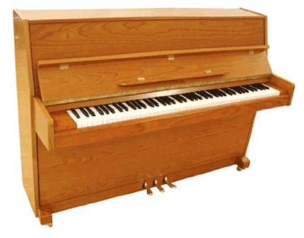 Das Klavier zeichnet sich durch eine massive Rastenbauweise und einem Resonanzboden aus Fichte aus.